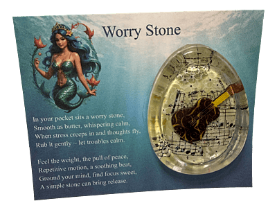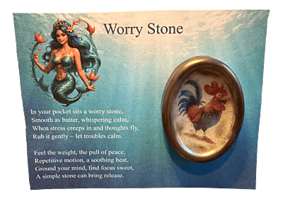 In your pocket sits a worry stone,Smooth as butter, whispering calm,When stress creeps in and thoughts fly,Rub it gently ~ let troubles calm.Feel the weight, the pull of peace,Repetitive motion, a soothing beat,Ground your mind, find focus sweet,A simple stone can bring release.