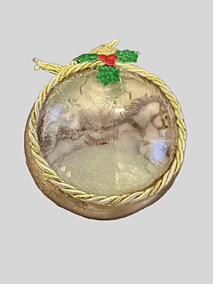 Introducing the Gleaming Galloper Keepsake Christmas Tree Ornament, your new holiday must-have! Imagine this vintage rocking horse nestled behind a clear round window, capturing the essence of Christmas nostalgia like a perfectly baked gingerbread cookie. Adorned with lush holly leaves and a shimmering gold cord, this ornament doesn’t just hang on your tree; it transforms it into a whimsical winter wonderland.