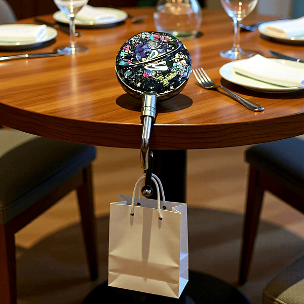 Imagine your purse, cradled in a shimmering galaxy as it dangles from the edge of your favorite café table. This celestial wonder transforms your bag’s burden into a statement of style. It's like giving your purse a first-class seat among the stars, far away from the lurking dangers of the floor — spills, scuffs, and sticky situations.