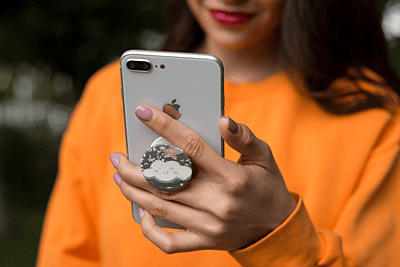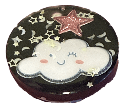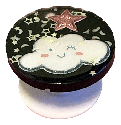 This black round pop socket sparkles with mischief, featuring a cheeky cloud and a constellation of sequins that makes holding your phone a delightfully cosmic experience.