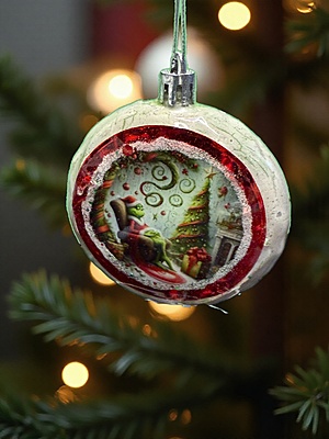 Whoville Whimsy: Grinch’s Cheeky Hideaway Christmas Tree Ornament