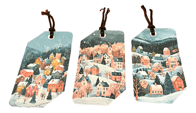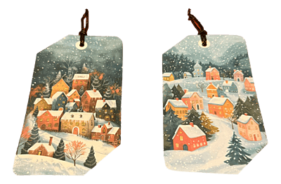 Unwrap a sprinkle of holiday magic this season with our Snowy Village Cheer Tags! Picture this: a whimsical village perched on a frosty hill, colours dancing like twinkling stars under the blanketed night sky. Each tag bursts with charming snowflakes, wrapping your gifts in a tapestry of festive spirit that even Santa's elves would envy. It’s like giving your presents a warm, fuzzy sweater — except it's a tag, and let’s face it, no one wants a sweater from Aunt Martha.