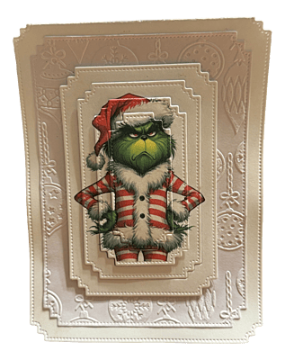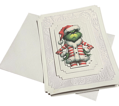 Step into a whimsical winter wonderland where the Grinch in his festive jammies snuggles right into your heart. This layered delight whispers joy, wrapped in holiday spirit and bound with a bow of laughter. Whisk away the grumpiness — let this card be the spark that ignites your merry mischief!