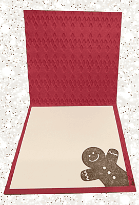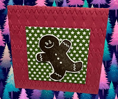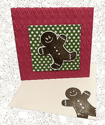 Introducing the Adorable Gingerbread Man Card Tag, a delightful hand-crafted gift tag that will add a touch of festive cheer to your special Christmas gifts. This charming tag features a happy gingerbread man dancing on the front, surrounded by a red textured card with a sprinkle of green stars atop, creating a whimsical and eye-catching design.