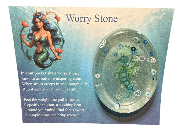 Dive into worry-free living with our Seahorse Bliss Pebble! This handcrafted, oval-shaped beauty isn’t just a rock — it's your pocket-sized piece of the ocean, designed to soothe your mind and lighten your mood. Imagine reaching into your bag and pulling out a mesmerizing blend of transparent blue waves and iridescent bubbles, all wrapped around an adorable seahorse. Instant stress relief? You bet! One touch, and you’ll feel like you’ve traded city chaos for a serene day at the beach.