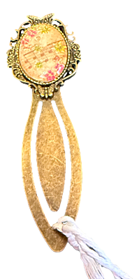 Let whimsy waltz through your reading ritual! This bookmark captures the ethereal charm of soft pink and green flowers intertwined in a symphonic embrace. With its bronze metal and open detailing, it's not just a page holder; it's a playful companion for your reading escapades, inviting chuckles and sighs with each use.