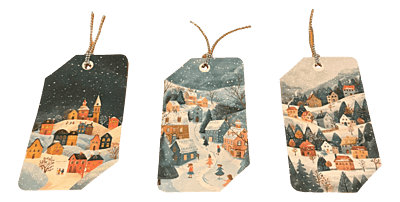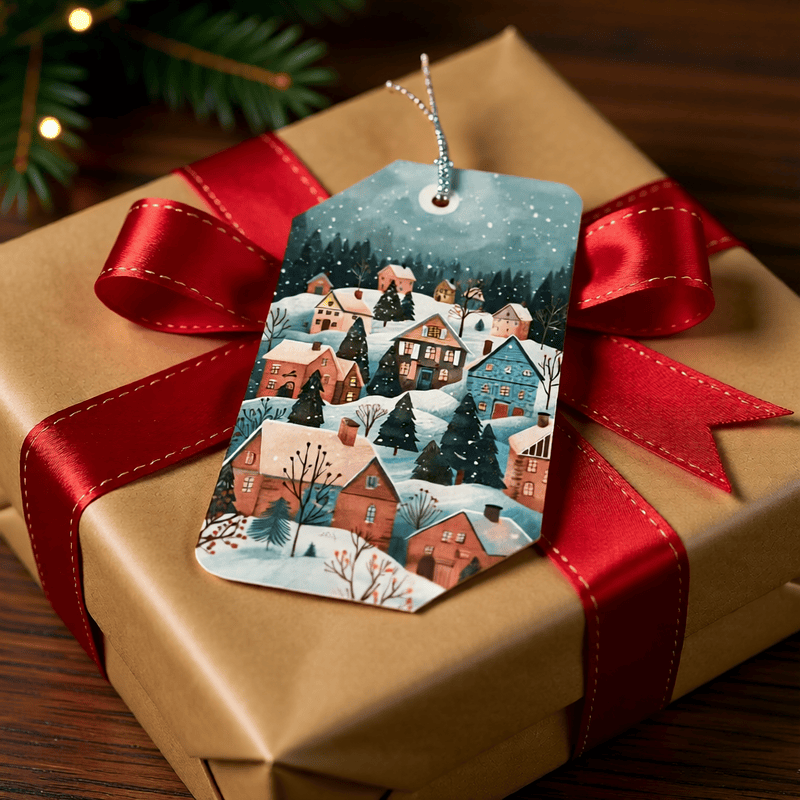 Wrap your joy in the charm of a whimsical village scene, each tag a tiny postcard from a snowy wonderland that begs to be explored.