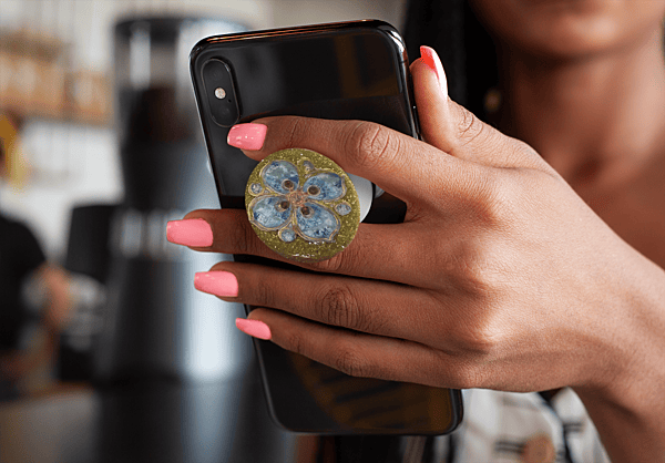 Say goodbye to boring hands! This unique pop socket features a glittering gold base and a beautiful blue flower, bringing floral finesse to your phone while giving you a secure grip for all your epic Instagram shots.