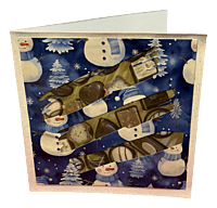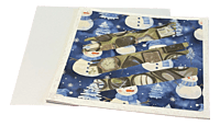 Experience a delightful holiday mash-up! Fractured blues reveal scrumptious chocolates, while snowflakes pirouette above cheeky trees and snowmen. “NOEL” glows bright, inviting you to send smiles wrapped in laughter and sweetness. It’s a card that turns the ordinary into extraordinary!