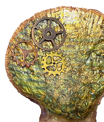 Picture this: three meticulously placed metal gears on the left side, adding an industrial flair that gives off serious steampunk vibes. The shell is hand-crafted with love and coated in resin for a glossy finish that not only protects it but also makes it shine like it just won a beauty pageant. Use it to hold your loose change, jewelry, โ this beauty can handle it all! Plus, itโs as eye-catching as a sunset over the ocean. ๐