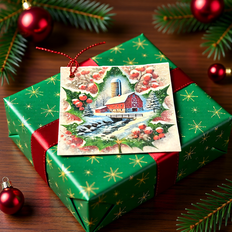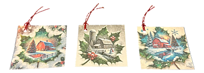 Deck your gifts with unique tags showcasing winter's best barn scenes — because gifting freshness is always in style!
