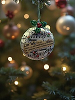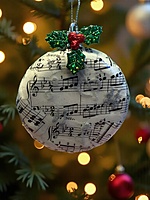 Deck your halls with a little musical magic this holiday season! Introducing the *Birds & Beats Bauble Ornament* — a dazzling sphere that fuses festivity with a symphonic twist. Picture this: sheet music elegantly decoupaged onto a round ornament, shimmering like a secret whispered in the winter air. Glimmering musical notes dance across its surface, while tiny feathered friends flutter around the enchanting definition of "carol," reminding us that every note carries a story, rich with warmth and joy.