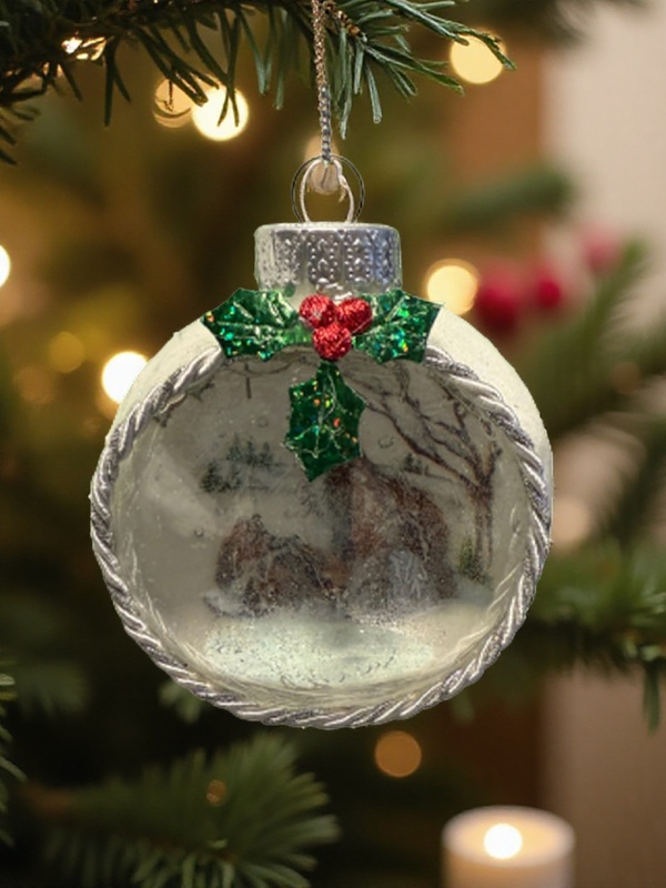 Why settle for boring ornaments when you can add a sprinkle of magic? This hand-crafted gem boasts a sparkling white backdrop that’s perfect for showing off to all your Insta followers. Encircled in a chic silvery cord with festive holly leaves on top, it’s basically the holiday vibe you didn’t know you needed. Plus, it’s a conversation starter – “Oh, you haven’t met my trendy frosty foxes? Let me introduce you!”
